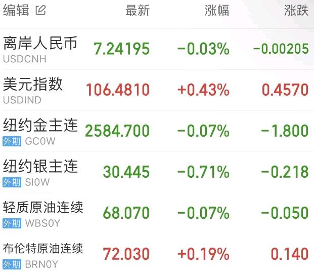 周三,由于美国10月CPI如期回升,美元指数强势未改,最终收涨0.43%,报106.481,创年内新高。