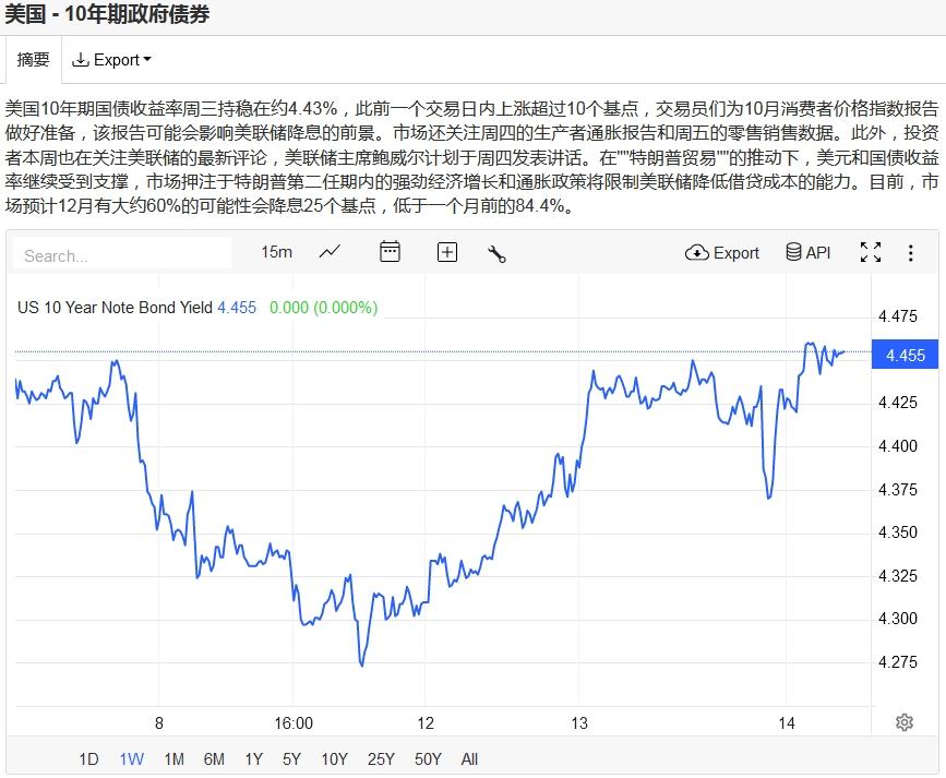 “新美联储通讯社”就10月的CPI表示,数据为美联储下月降息留出空间。华尔街分析师表示,符合预期的CPI数据几乎可以确保美联储下月仍会降息,但市场仍需评估美国下届总统特朗普上台后对通胀造成的影响,这可能导致美联储明年放慢降息脚步。