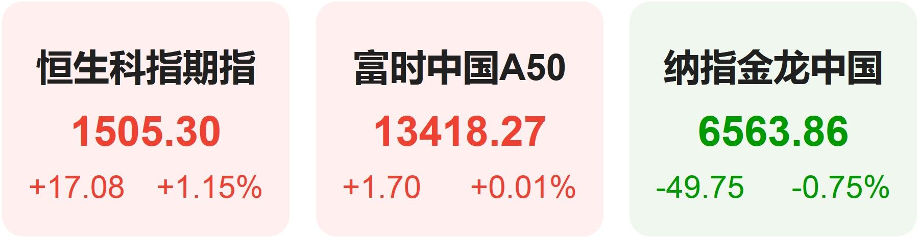 11月19日,隔夜恒生科技指数期货上涨1.15%,纳斯达克中国金龙指数下跌0.75%,富时中国A50指数上涨0.01%。