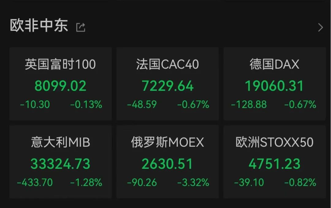 数据显示,截至当地周二(11月19日)收盘,欧股全线走弱。
