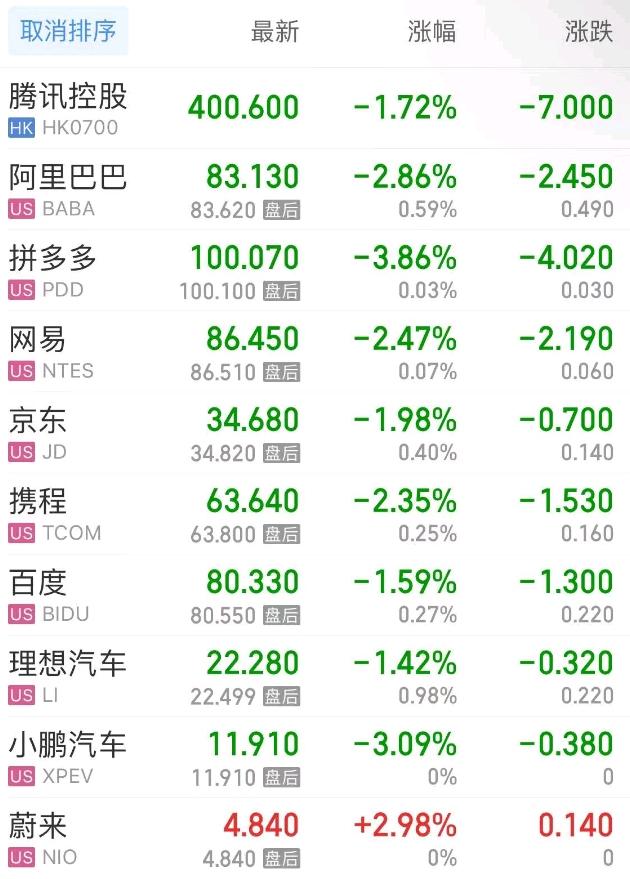 上周五,热门中概股方面,腾讯控股(港股)跌1.72%,阿里巴巴跌2.86%,拼多多跌3.86%,网易跌2.47%,携程跌2.35%,百度跌1.59%,理想汽车跌1.42%,小鹏汽车跌3.09%,蔚来涨2.98%。