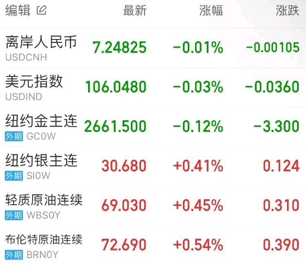 美元基本持平,美元指数收跌0.03%,报106.048。