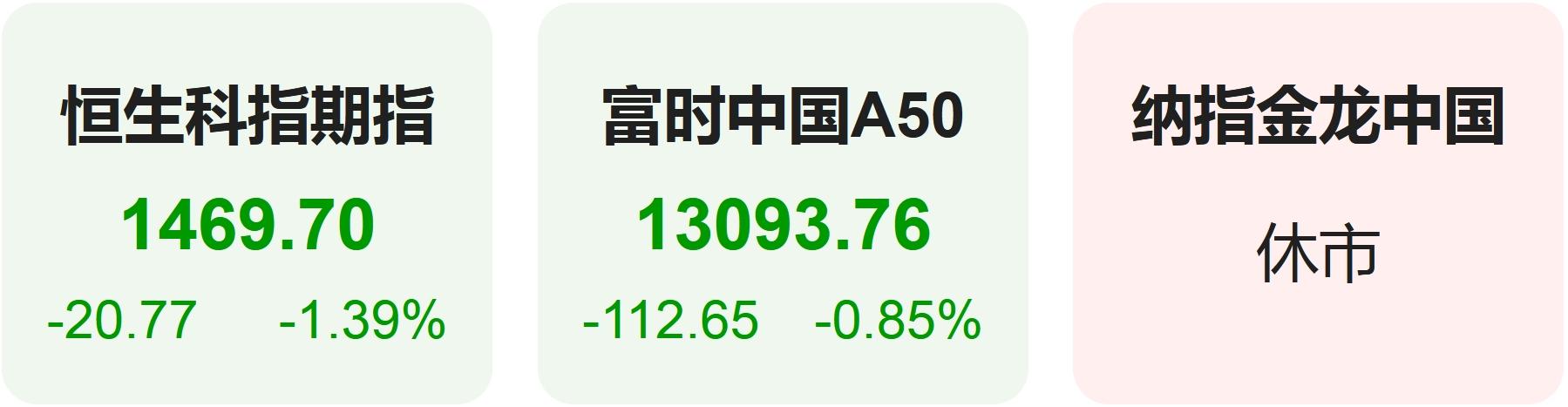 11月28日,隔夜恒生科技指数期货跌1.39%,富时中国A50指数跌0.85%。