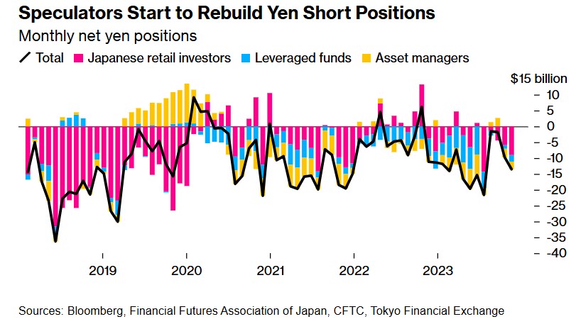 投机势力开始重新建立日元空头头寸——每月日元净持仓