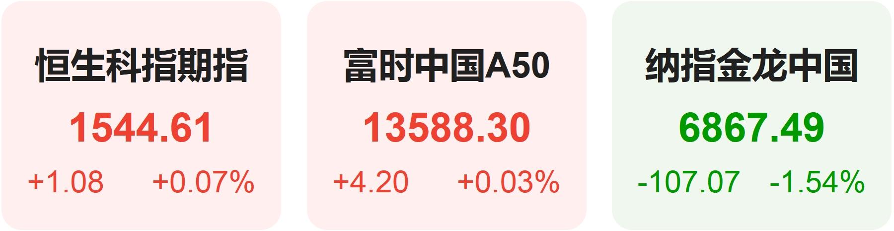 12月27日,恒生科技指数期货上涨0.07%,纳斯达克中国金龙指数下跌1.54%,富时中国A50指数上涨0.03%。