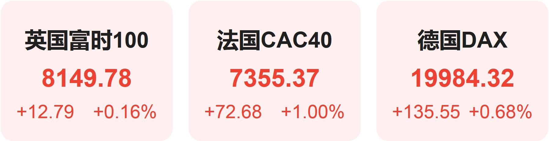 上周五,欧洲股市方面,英国富时100指数小幅上涨0.16%,报8150点。法国CAC40指数小幅上涨1.00%,报7355点。德国DAX指数小幅上涨0.68%,报19984点。