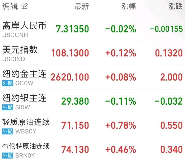 因市场预期特朗普上台后将放宽监管、减税、提高关税和收紧移民政策,美元指数继续徘徊在两年高位,最终收涨0.12%,报108.13。