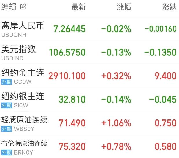 资者降低了对美国关税的押注,美元指数在两个月来的低点附近徘徊,最终收跌0.13%,报106.575。