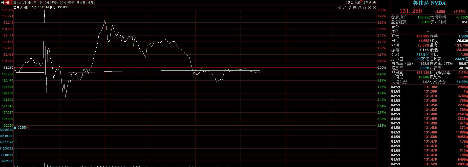 英伟达盘后分时