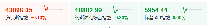 今晚美股三大指数表现震荡,道指小幅上涨,纳斯达克指数微跌。