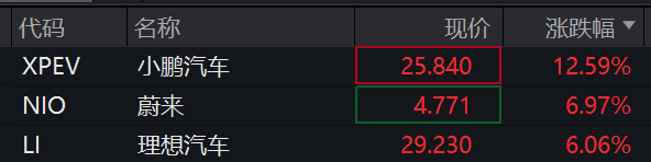 造车新势力股价持续走高,小鹏汽车涨超12%,蔚来涨近7%,理想汽车涨超6%。