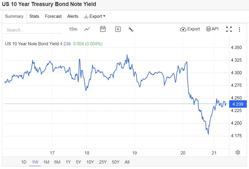 美债收益率多数收跌,收益率曲线持续陡峭化,基准的10年期美债收益率收报4.235%;对货币政策更敏感的两年期美债收益率收报3.974%。