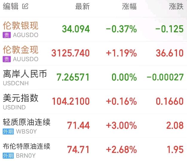 因特朗普警告可能对俄罗斯石油买家征收二级关税、威胁轰炸伊朗并征收关税,国际油价大幅走高。WTI原油最终收涨3%,报71.44美元/桶;布伦特原油收涨2.68%,报74.71美元/桶。