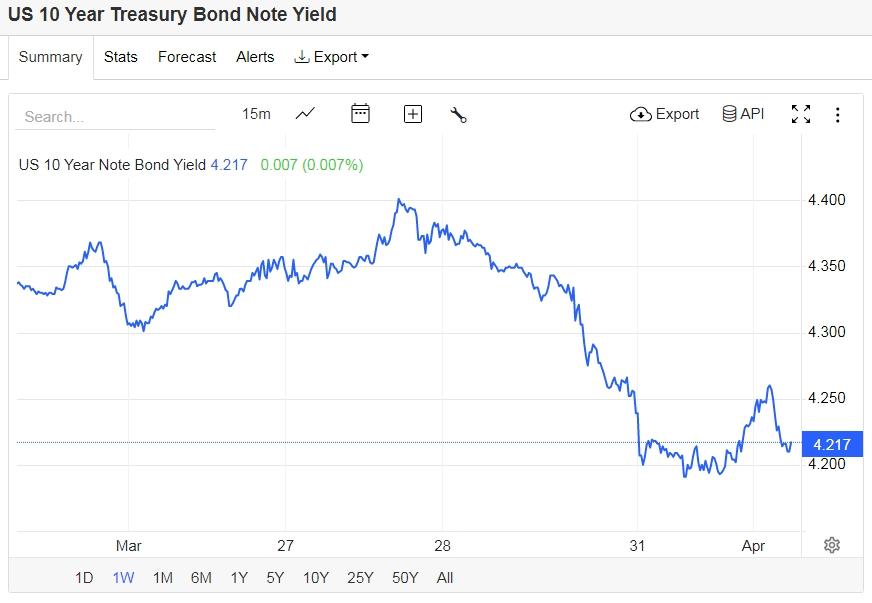 美债收益率小幅波动,基准的10年期美债收益率收报4.2100%;对货币政策更敏感的两年期美债收益率收报3.8950%。
