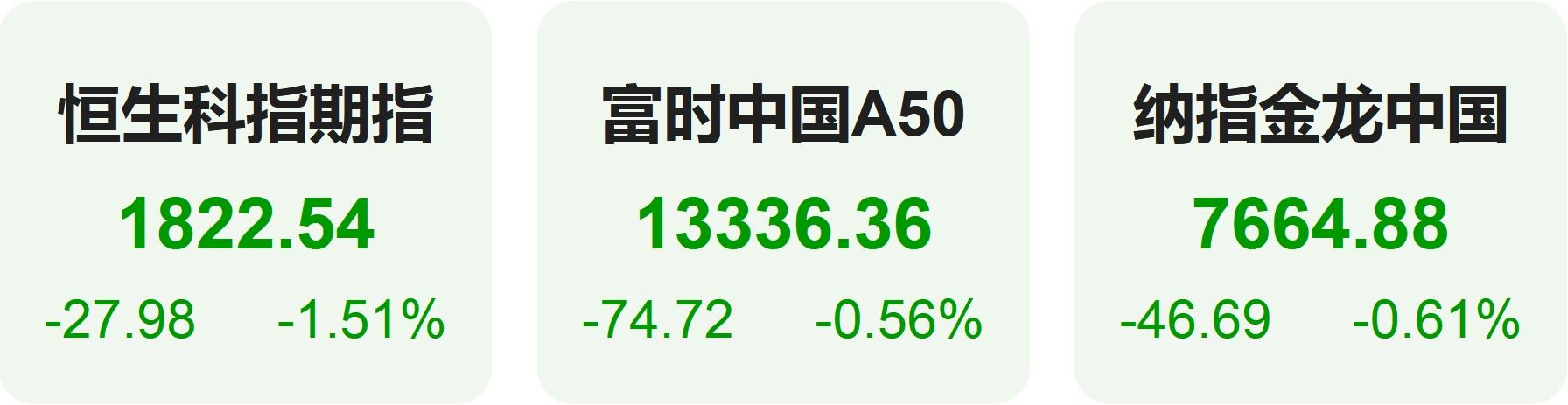 3月31日,隔夜恒生科技指数期货下跌1.51%,纳斯达克中国金龙指数下跌0.61%,富时中国A50指数下跌0.56%。