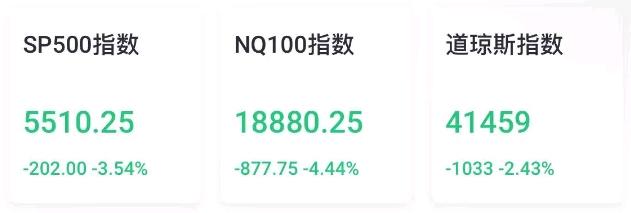 盘后美股指期货重挫,截至发稿,道指期货跌超2%,或跌超1000点,标普500期货跌超3%,纳指100期货跌超4%。