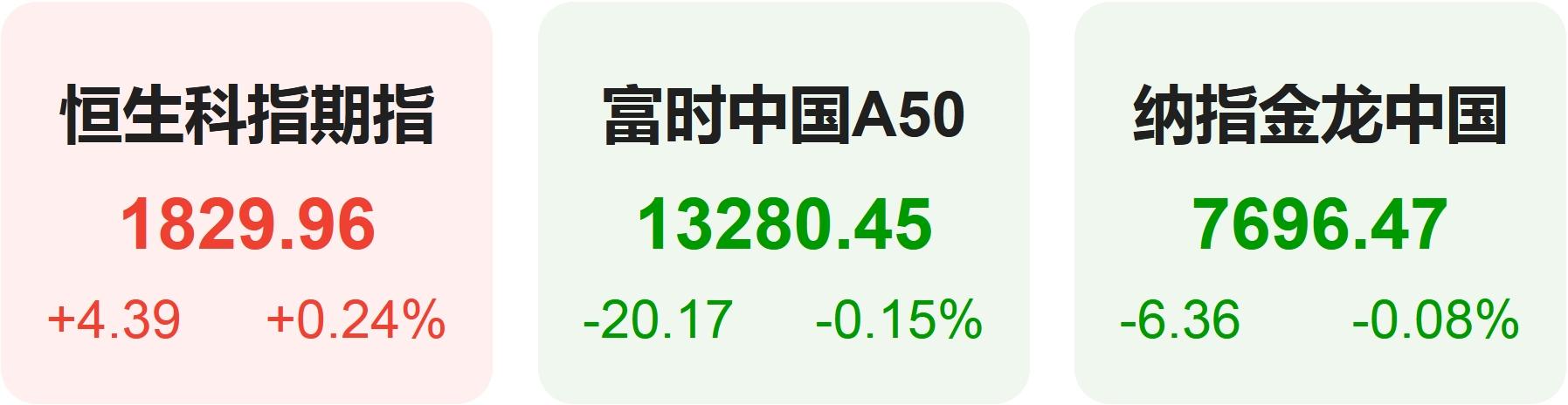 4月2日,隔夜恒生科技指数期货上涨0.24%,纳斯达克中国金龙指数下跌0.08%,富时中国A50指数下跌0.15%。