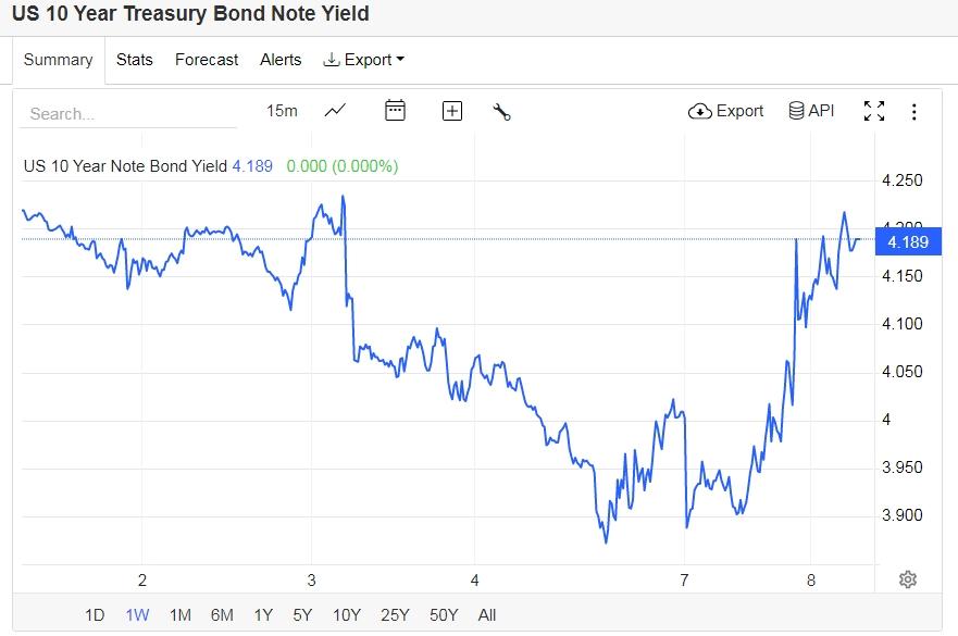 美债收益率大幅拉升,基准的10年期美债收益率收报4.177%;对货币政策更敏感的两年期美债收益率收报3.769%。