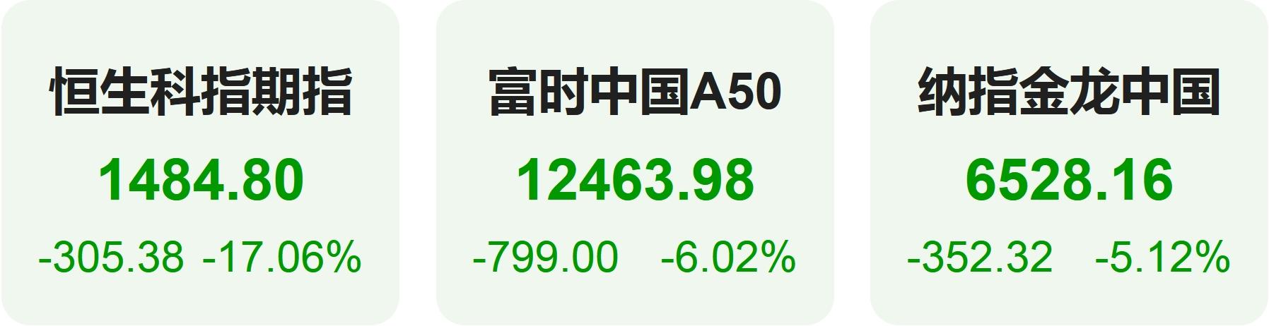 4月7日,隔夜恒生科技指数期货下跌17.06%,纳斯达克中国金龙指数下跌5.12%,富时中国A50指数下跌6.02%。