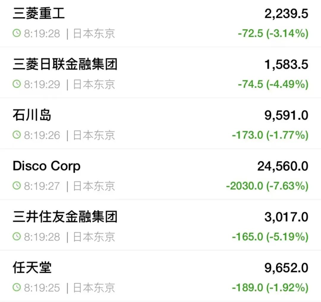 个股方面,日本金融股大幅下跌,野村控股股价跌近6%,三井住友金融集团股价跌超5%,三菱日联金融跌超4%。
