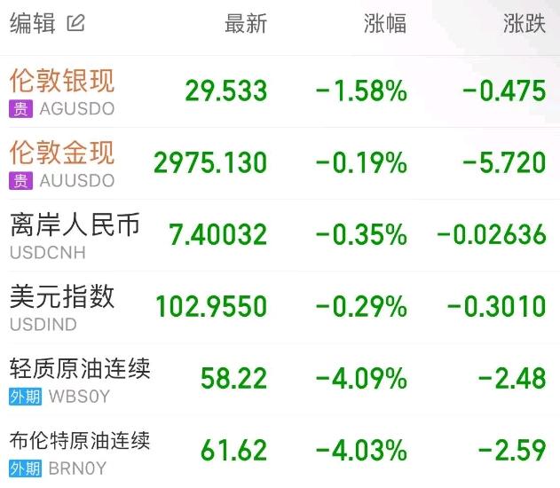 国际油价延续跌势,再度大跌4%。WTI原油盘中一度大跌超5%,创2021年4月12日以来新低,最终收跌4.09%,报58.22美元/桶;布伦特原油收跌4.03%,报61.62美元/桶。