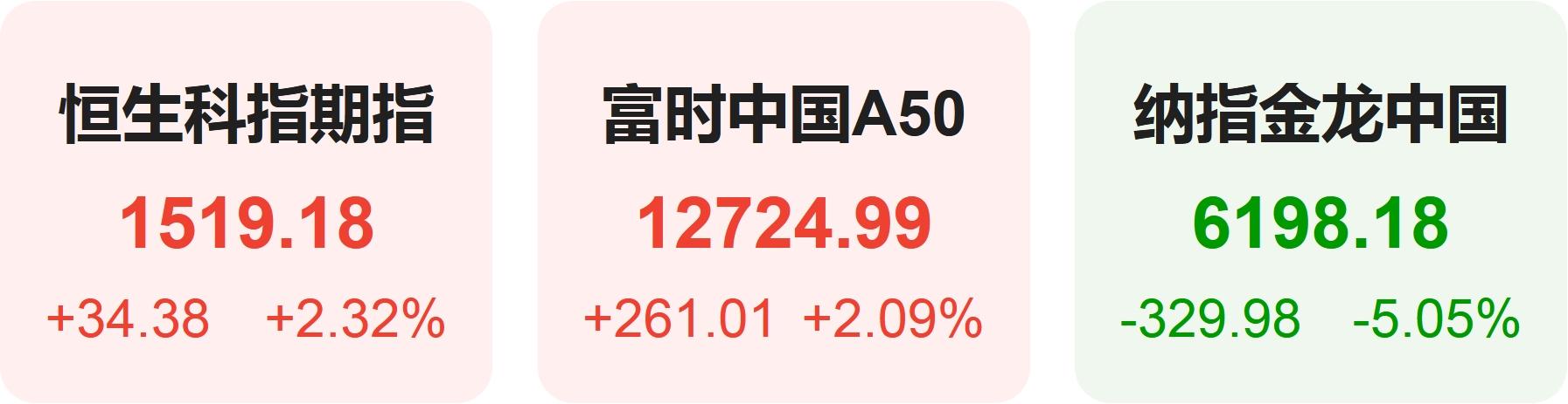 4月8日,隔夜恒生科技指数期货上涨2.32%,纳斯达克中国金龙指数下跌5.05%,富时中国A50指数上涨2.09%。