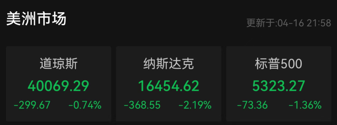 截至发稿,纳指跌超2%,标普500指数跌超1%。