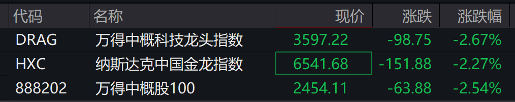 中概股普跌。纳斯达克中国金龙指数跌超2%。