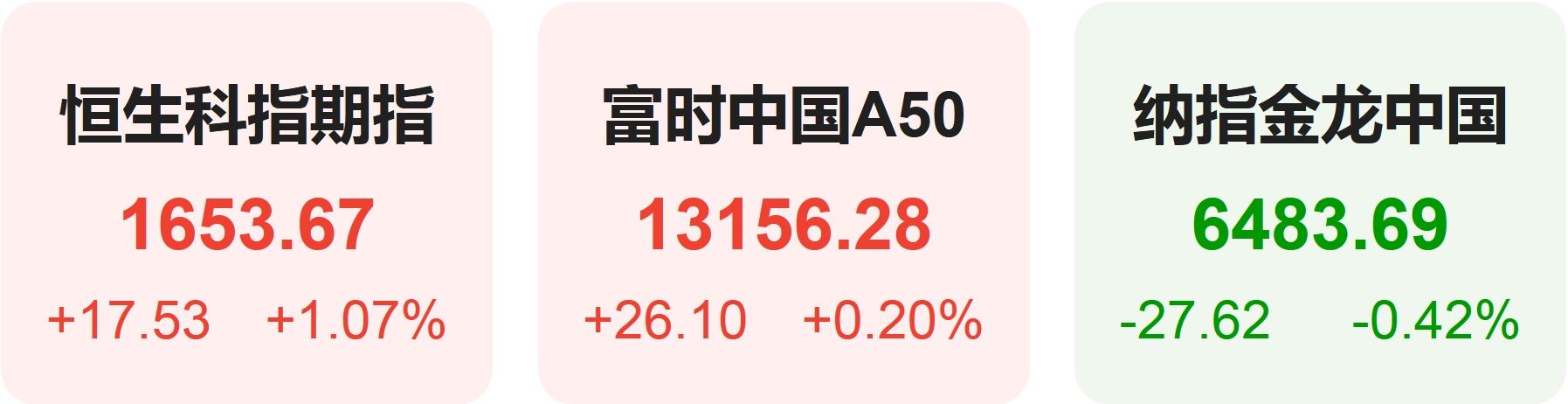 4月17日,隔夜恒生科技指数期货上涨1.07%,纳斯达克中国金龙指数下跌0.42%,富时中国A50指数上涨0.20%。
