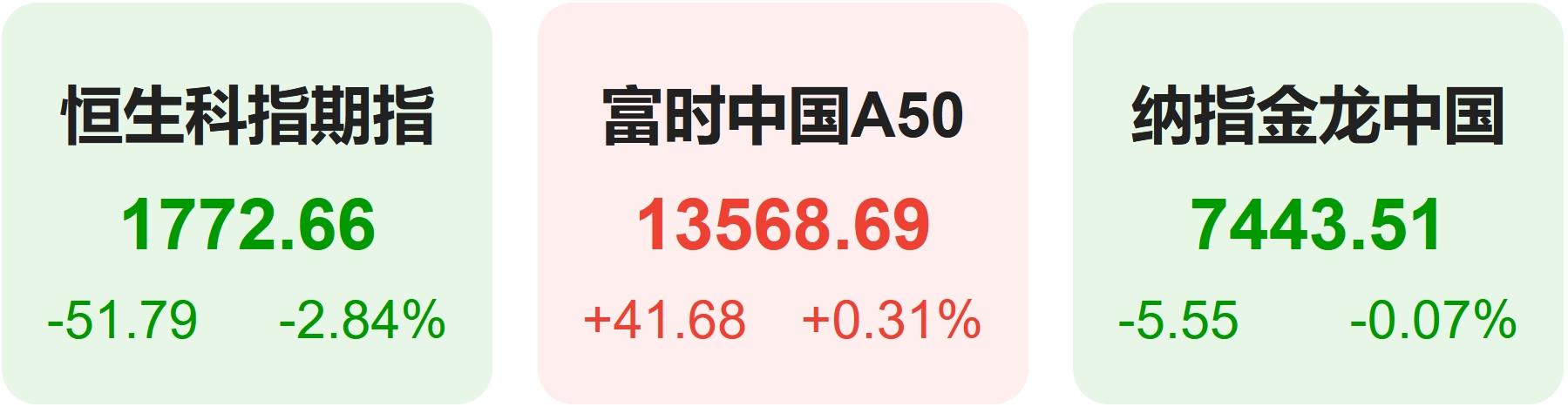 5月13日,隔夜恒生科技指数期货下跌2.84%,纳斯达克中国金龙指数下跌0.07%,富时中国A50指数上涨0.31%。