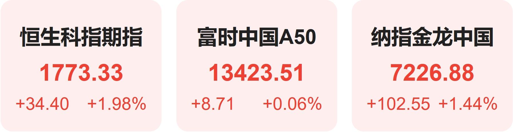 5月29日,隔夜恒生科技指数期货上涨1.98%,纳斯达克中国金龙指数上涨1.44%,富时中国A50指数上涨0.06%。