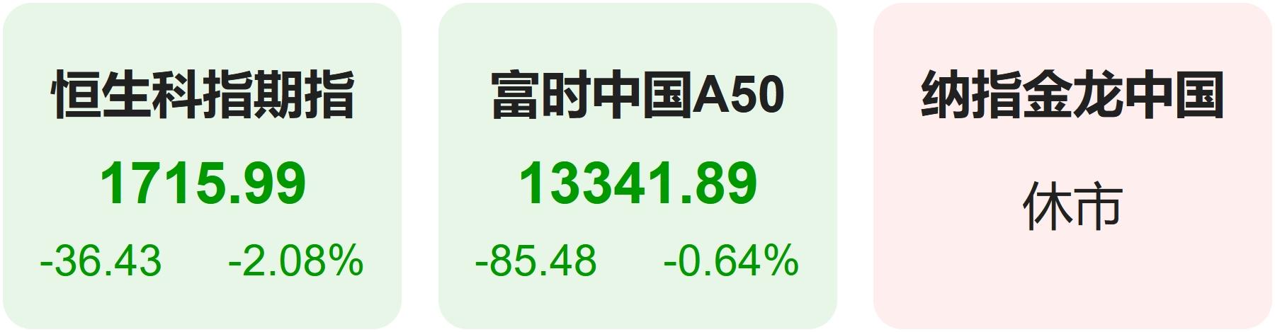 隔夜恒生科技指数期货下跌1.76%,富时中国A50指数上涨0.07%。