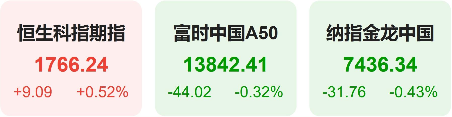 7月11日,隔夜恒生科技指数期货上涨0.52%,纳斯达克中国金龙指数下跌0.43%,富时中国A50指数下跌0.32%。