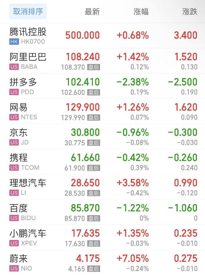 热门中概股方面,腾讯控股(港股)涨0.68%,阿里巴巴涨1.42%,拼多多跌2.38%,网易涨1.26%,携程跌0.42%,理想汽车涨3.58%,百度跌1.22%,小鹏汽车涨1.35%,蔚来涨7.05%。