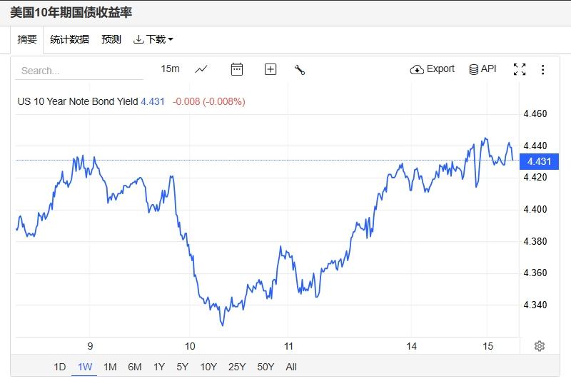 美债收益率延续涨势,基准的10年期美债收益率收报4.439%,对利率更加敏感的2年期美债收益率收报3.919%。