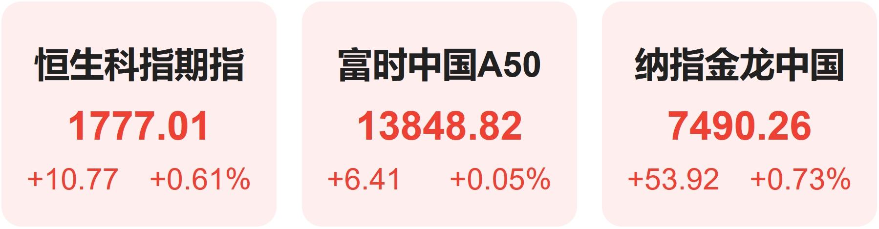 7月14日,隔夜恒生科技指数期货上涨0.61%,纳斯达克中国金龙指数上涨0.73%,富时中国A50指数上涨0.05%。