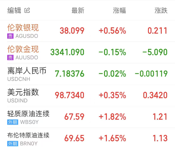 现货黄金在美国“恐怖数据”大超预期后跳水,随后跌幅有所收窄,伦敦金最终收跌0.12%,收报3342.11美元/盎司;现货白银反弹更加显著,伦敦金最终收涨0.56%,报38.1美元/盎司。