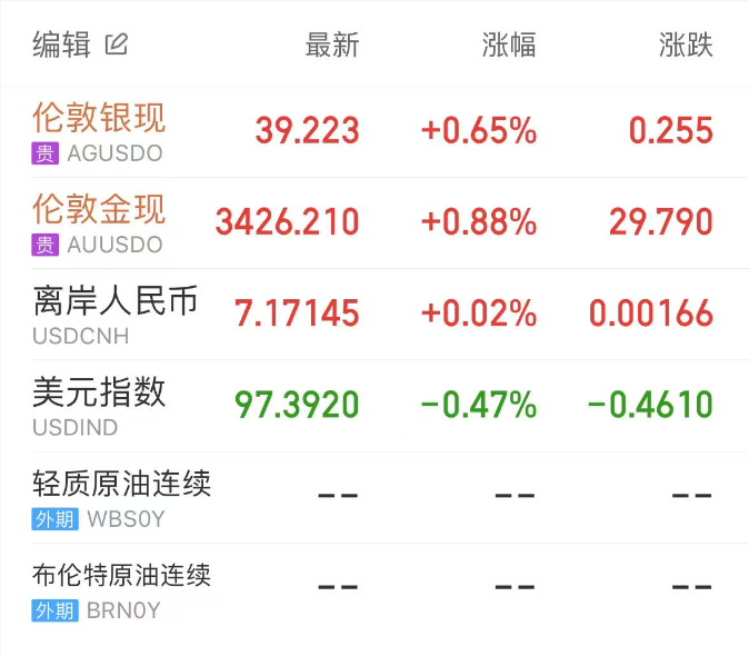现货黄金由跌转涨,伦敦金最终收涨0.92%,收报3427.75美元/盎司,再创一个多月新高;现货白银再度突破39美元关口,伦敦银最终收涨0.72%,报39.249美元/盎司,续刷2011年9月新高。