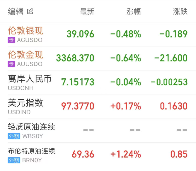 随着全球贸易紧张局势缓和的迹象抑制了对避险资产的需求,现货黄金连续第二个交易日回调,伦敦金最终收跌0.62%,收报3368.79美元/盎司;现货白银围绕39美元关口震荡,伦敦银最终收跌0.46%,报39.106美元/盎司。
