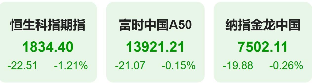 8月8日,隔夜恒生科技指数期货下跌1.21%,纳斯达克中国金龙指数下跌0.26%,富时中国A50指数下跌0.15%。