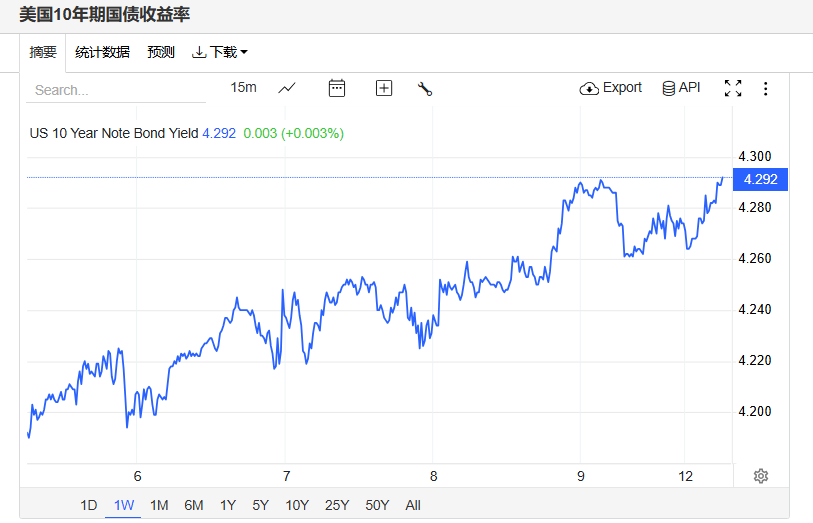 美债收益率微涨,基准的10年期美债收益率收报4.292%,对利率更加敏感的2年期美债收益率收报3.783%。