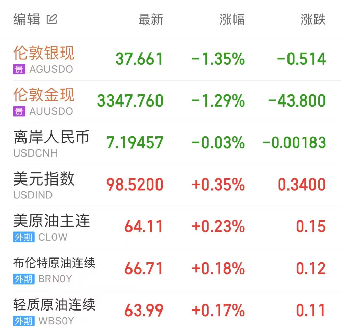 美元指数小幅走高,并在美盘时段一度涨至98.65的日内高点,最终收涨0.35%,报98.52。