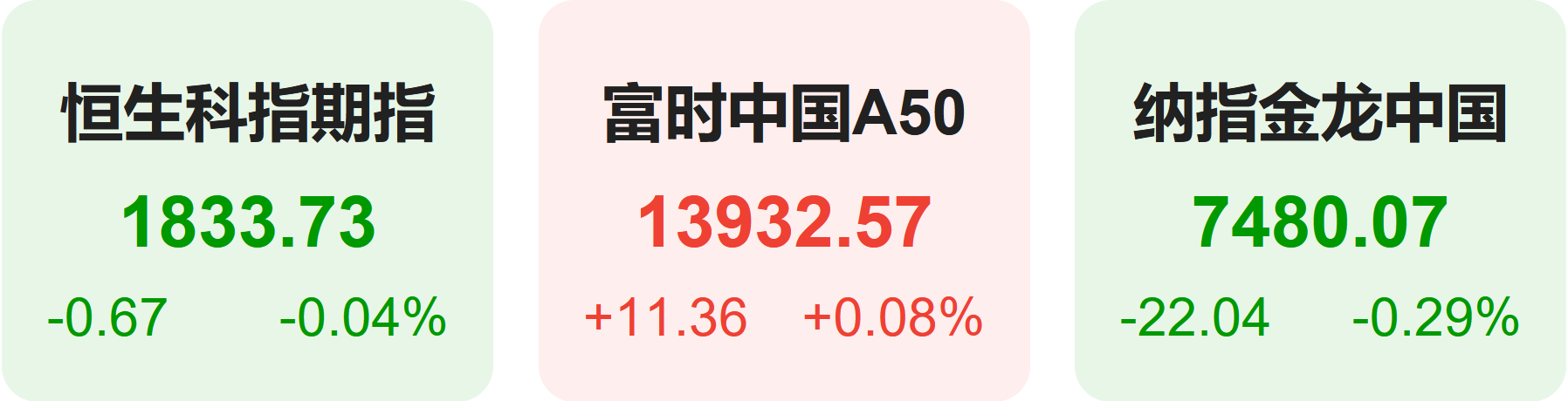 8月11日,隔夜恒生科技指数期货下跌0.04%,纳斯达克中国金龙指数下跌0.29%,富时中国A50指数上涨0.08%。