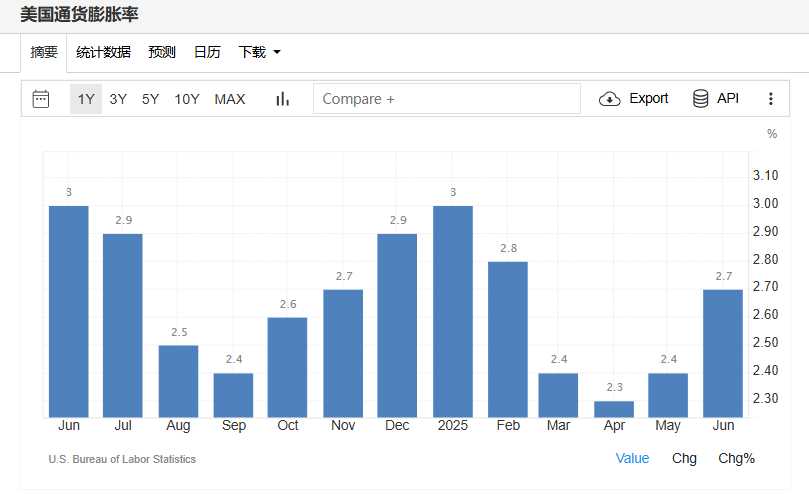 根据道琼斯的预测数据,经济学家预计7月CPI将环比上涨0.2%,同比上涨2.8%。剔除波动较大的食品和能源价格后,核心CPI预计环比上涨0.3%,同比上涨3.1%,较6月水平分别提升0.2和0.9个百分点。