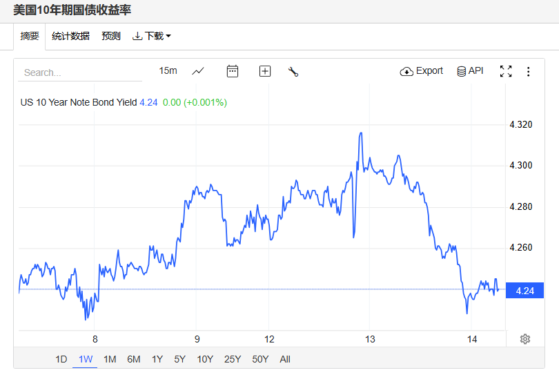 美债收益率下滑,基准的10年期美债收益率收报4.24%,对利率更加敏感的2年期美债收益率收报3.683%。