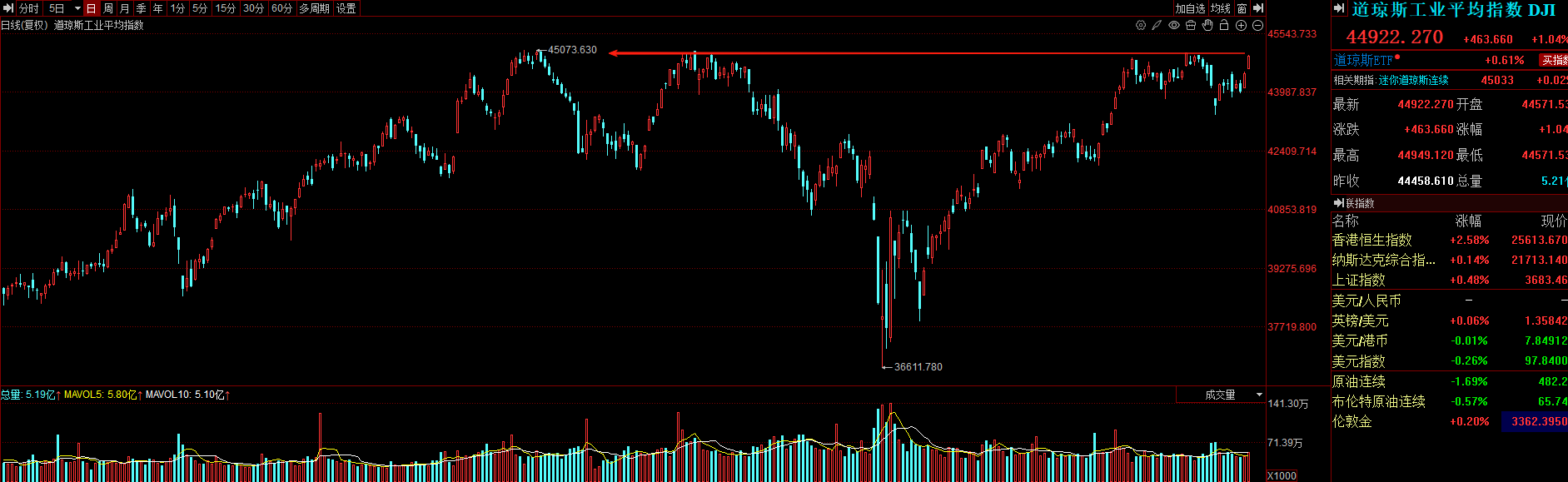 截至收盘,标普500指数涨0.32%,报6466.58点;道琼斯指数涨1.04%,报44922.27点,距离去年12月刷新的历史高位只有一步之遥;纳斯达克指数涨0.14%,报21713.14点。