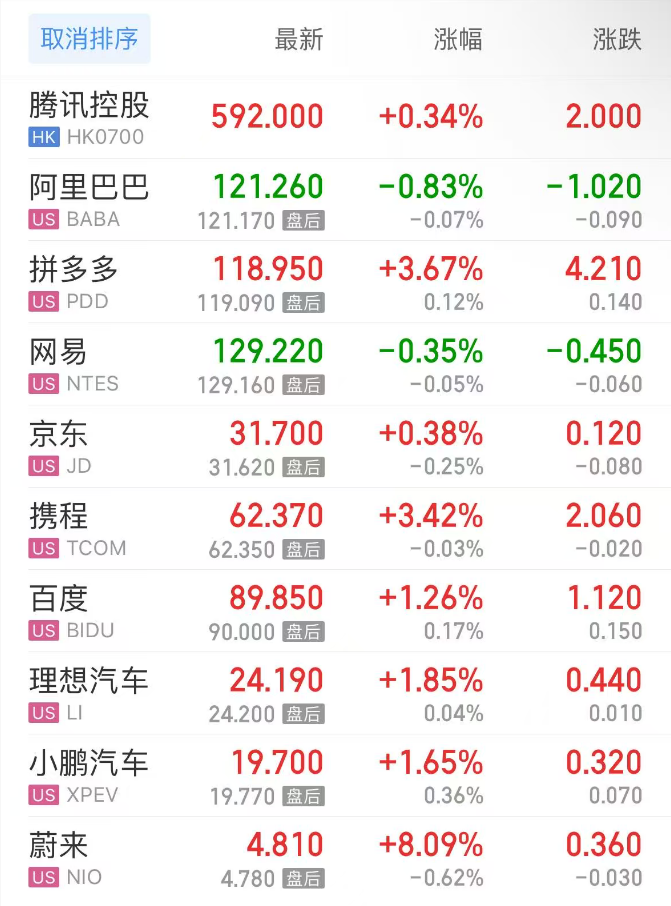 上周五,热门中概股方面,腾讯控股(港股)涨0.34%,阿里巴巴跌0.83%,拼多多涨3.67%,网易跌0.35%,携程涨3.42%,百度涨1.26%,理想汽车涨1.85%,小鹏汽车涨1.65%,蔚来涨8.09%。