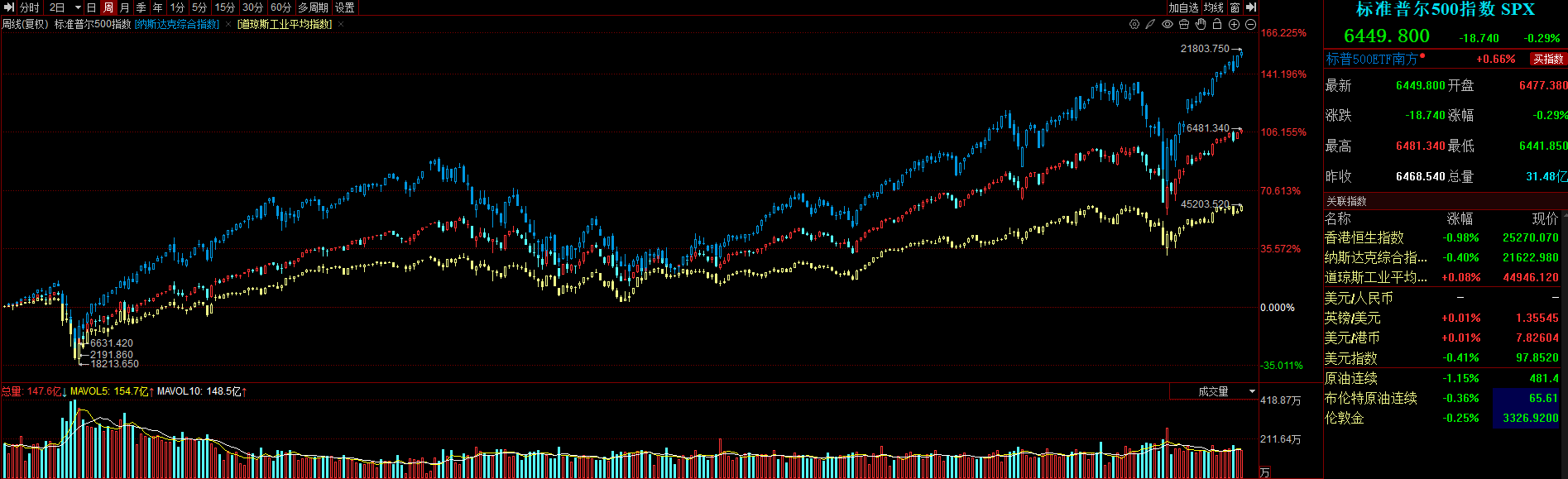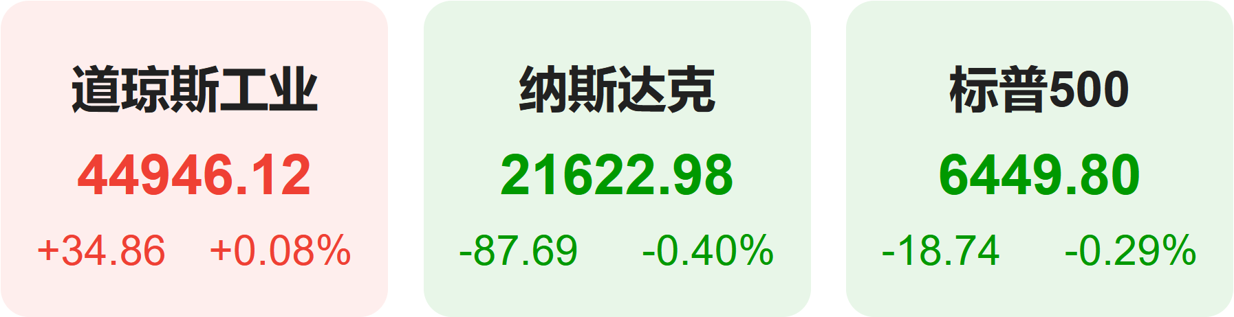 截至上周五收盘,标普500指数跌0.29%,报6449.80点;道琼斯指数涨0.08%,报44946.12点;纳斯达克指数跌0.40%,报21622.98点。
