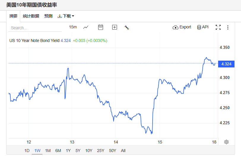 上周五,美债收益率小幅波动,基准的10年期美债收益率收报4.321%,对利率更加敏感的2年期美债收益率收报3.763%。