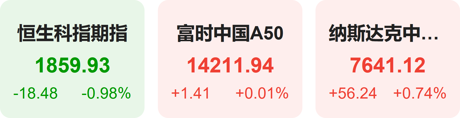 8月15日,隔夜恒生科技指数期货下跌0.98%,纳斯达克中国金龙指数上涨0.74%,富时中国A50指数上涨0.01%。